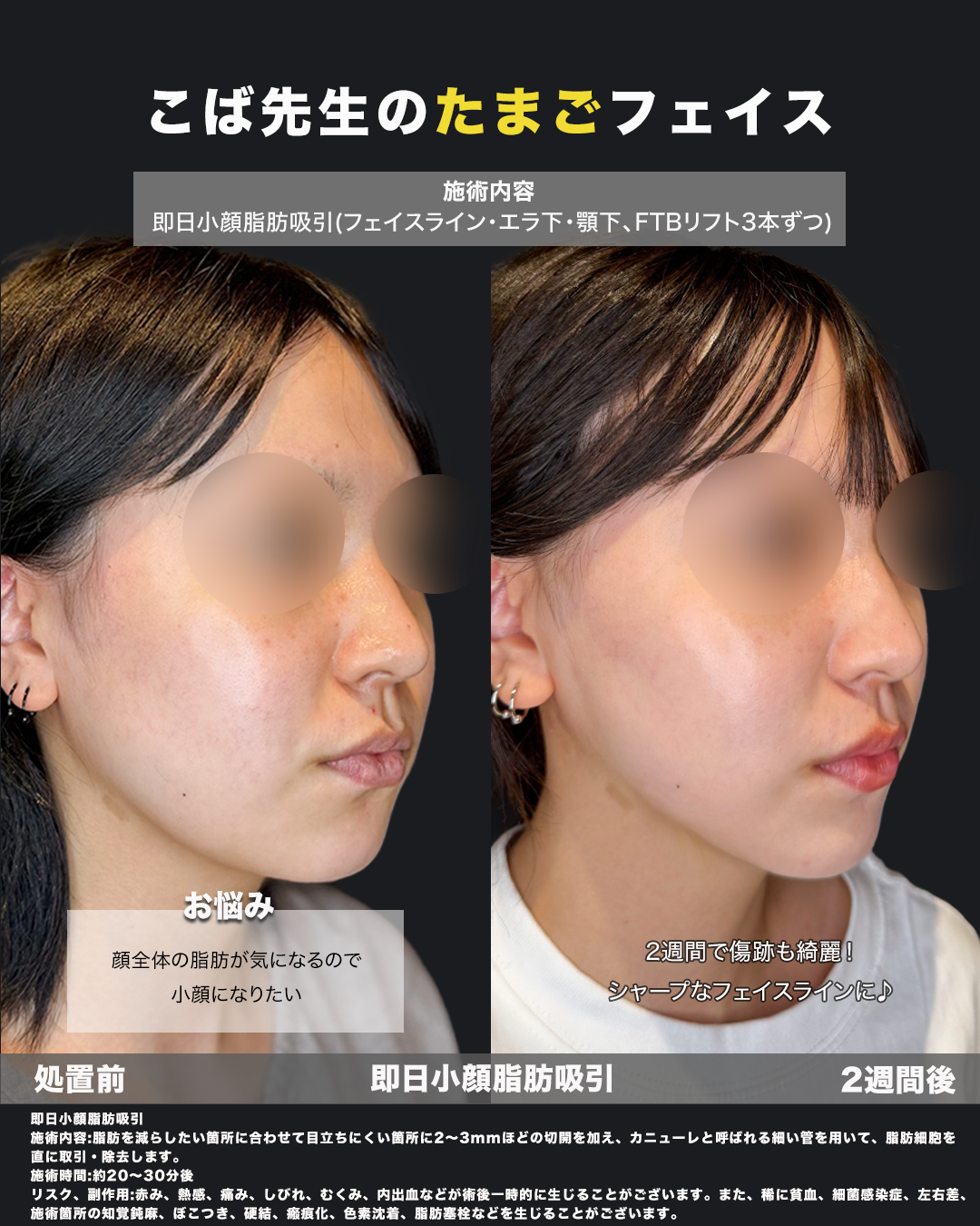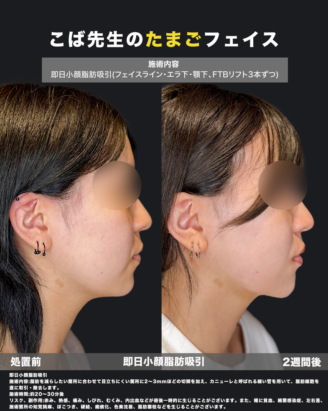 • 糸リフトの併用でタイトニング効果アップ:脂肪吸引後の皮膚のたるみを防ぎ、フェイスラインを長期間キープ