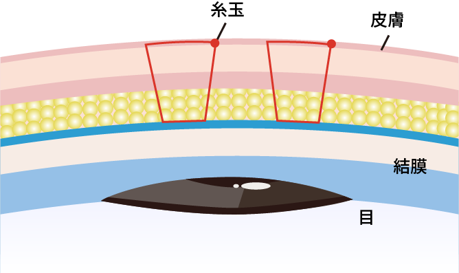まぶたの表面に4点の針穴程度の傷をあけて二重まぶたを形成していきます。